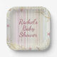 Merci Tropical Beach Seashell Baby shower Boho Chic Modern Party Paper Plates présente un joli design sur la plage dans des couleurs pastel avec coquillages et votre texte personnalisé dans le centre dans élégante calligraphie de script de typographie rose. Fournitures parfaites pour les fêtes de baby shower. Conçu par Evco Studio www.zazzle.com/store/evcostudio