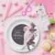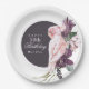 Magnifiquement des fournitures uniques pour une fête de 50ème anniversaire ou n'importe quel âge, ce magnifique design boho inspiré plaque en papier a un perroquet rose perché sur les luxuriants flores d'aquarelle tropicale avec un cadre rond mauve de baies foncées. Célébrez la dame d'anniversaire dans un style mémorable ! Montré ici comme un 50e anniversaire, vous pouvez customiser l'âge à tout âge. Les belles fleurs de ce design élégant comprennent des protéas exotiques, des orchidées, des dahlias et des feuilles tropicaux.