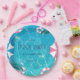 Tropical Summer Pool Party Plates to complement your pool party. The design features a swimming pool with realistic, inviting water, tropical palm fronds, various pink and white floaties, and umbrellas. There are also matching napkins and a party invite available. Splish splash, party on, and have fun!