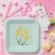 Assiettes En Carton Tulipes Jaunes & Plaque de Papier Vert Doux
