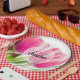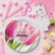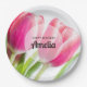 Assiettes En Carton Tulipes roses avec Feuilles verts Photo Anniversai