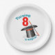 Magic thème 8ème anniversaire assiettes de fête avec casquette magicien, baguette magique design.