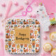 Plaques en papier avec un motif d'automne saisonnier, maïs, champignons et flore. Avec des dindes et des épouvantails pour honorer la tradition Thanksgiving.