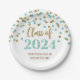 Classe graduation personnalisable de 2024 assiettes en or glamour et confetti turquoise motif et élégant texte de style lettré à la main.
