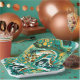 Assiettes En Carton Turquoise, Or, Marbre Fluide Art