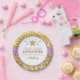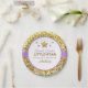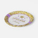 "Twinkle scintille petite étoile un an est ce que vous êtes (nom.)" est ce que ces plaques d'or et violet de premier anniversaire disent. Vous pouvez aussi utiliser ces assiettes pour les baby showers en changeant le dicton "Twinkle twinkle petite étoile vous savez combien vous êtes aimé(nom.)" Ces assiettes sont accentuées en violet et ont un arrière - plan d'or brillant avec l'or et les étoiles violettes sur le dessus.