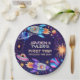 Cette conception de l'espace pour une fête d'anniversaire conjointe avec deux frères et soeurs jumeaux comprend deux navires-roquettes, des planètes, le soleil, des comètes, un OVNI et beaucoup d'étoiles sur un arrière - plan violet foncé dans un style aquarelle. Vous pouvez customiser tout le texte pour convenir à votre événement. Voir l'ensemble de la collection correspondante. Toutes les oeuvres sont illustrées à la main par Kaitlyn Thomas et protégées par copyright.