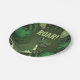Destei's original mignon dessin de dessin animé d'un Tyrannosaurus vert Rex / T-rex dinosaure. Il y a aussi une zone de texte personnalisable au-dessus du dinosaure qui se lit maintenant : "Roar !". Le design est encadré par des plantes tropicaux, dont des fougères et des feuilles de monastères. Le design a été créé en pensant aux fêtes d'anniversaire des enfants.