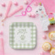 Habille la table des desserts avec cette assiette en vichy sucrée qui la célèbre d'une année d'or. La bordure verte encadre le texte modifiable pour le nom de votre fille et la date de la fête - tapez, enregistrez, et vous avez un accent prêt pour la photo pour les tranches de gâteau, les collations ou les faveurs de fête à son premier anniversaire.
