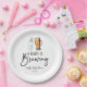 Voici un bébé brasse une bouteille de bière plaque de papier Baby shower en verre de bière!