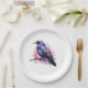 Plaques en papier avec l'image d'un corbeau noir aux ailes violettes roses. Une aquarelle rose derrière cet oiseau mystique.