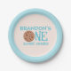 Conception de biscuits à puces de chocolat adorable pour les assiettes de 1er anniversaire de bébé garçon avec design "One Sweet Cookie" sur le devant avec nom personnalisable. Pour plus de cadeaux assortis, papeterie et articles de maison comme celui-ci, cliquez sur "SimiSwimStudio" pour voir le reste de la boutique!