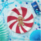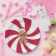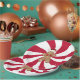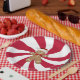 Cute homme en pain d'épices avec le casquette du Père Noël sur le design tourbillon de menthe de Noël rouge et blanc.