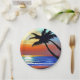 Plaques d'anniversaire. couleurs vintages silhouette de palmier et vagues de l'océan sur une plage de sable ai généré des oeuvres d'art.