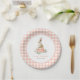 Ajoutez une touche de finition au décor de fête d'anniversaire de votre petit avec ces plaques en papier, avec des fleurs d'aquarelle rose et du lapin sur un arrière - plan rose en vichy plaid.