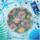 Un motif floral vibrant dressé contre un arrière - plan vert. Les fleurs sont peintes dans un mélange de couleurs, rose, jaune et blanc, avec des détails complexes comme les bords pétales et les centres floraux. Des feuilles verts sont disséminés un peu partout, complétant les fleurs. L'ensemble donne une atmosphère fraîche et animée, qui rappelle le printemps ou l'été.