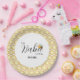 "A little Babee is on the way" sur le motif de nid d'abeilles Date personnalisable Baby Showerpaper plaque. Un motif en nid d'abeille encadre l'assiette. Un bébé bourdon mignon dort sur le texte au centre de la serviette. Cette plaque en papier correspond à notre jolie collection de bourdons. Choisissez vos favoris pour coordonner et planifier votre événement. La conception est neutre du point de vue du sexe. Vous pouvez ajouter des éléments de conception avec d'autres choix de couleurs.