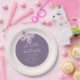 Un petit papillon est sur le chemin des plaques de papier Baby shower. Le design présente un papillon floral rose, violet et bleu poussiéreux sur un arrière - plan violet foncé avec un subtil motif en treillis autour de la frontière. "Un petit papillon" est inclus comme élément design. Tous les autres textes peuvent être modifiés, y compris les polices, les couleurs, etc. © Kimbellished, LLC