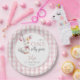 Ces charmantes plaques en papier de fête du 1er anniversaire sont ornées d'une oie mignonne et d'un arrière - plan en vichy rose. Conçu par Thisisnotme©