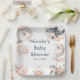 Beautiful baby shower party plate features a dolphin, whale, jellyfish, seahorse, starfish and turtle with coral pink floral arrangements. Perfect for a baby shower. The words can be changed to suit your own details or requirements