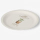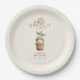 Nos assiettes en papier pour baby shower à base de produits locaux du marché fermier représentent un bébé dans un pot de plante portant un chapeau feuillu.