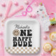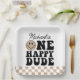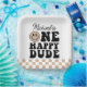Un joyeux Dude fête d'anniversaire plaques en bronze. Plats de dessert pour la fête d'anniversaire One Happy Dude.