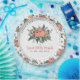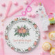 Petites assiettes de papier de baby shower pêche mignonnes avec pêches, fleurs de pêche, verdure et une bordure à motif pêche pour un baby shower à thème pêche.