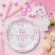 Perfect for birthday cake, snacks, dessert tables, and everyday kids celebrations, this paper plate adds a playful and imaginative touch to the table. The repeating unicorn flying an airplane design is drawn in a bright pink line style that feels cheerful and cute, while the small blue stars add a light sky-inspired accent. The clean white background keeps the look fresh and easy to match with colorful party décor. A sweet choice for unicorn themes, aviation-loving kids, or any celebration that calls for a fun and dreamy design.