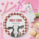 Sainte vache ! Vache mignonne et plaques d'anniversaire rouge plaid.