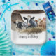 Trois vaches d'aquarelle de la grange alimentent la truite remplie de foin avec le texte pour la fête d'anniversaire. Le texte est modifiable.