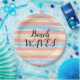 Vagues de plage est écrit en joli script noir. Couleurs pastel inondées de soleil en rose corail, bleu ciel, bandes aquarelle jaune sur fond blanc. Œuvre originale © TamiraZDesigns