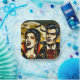 Plaques papier de fête d'Halloween. Lui et ses vampires avec une pleine lune arrière-terrain avec bats bande dessinée pop art ai art. Cool pour Halloween ou quiconque aime les vampires.