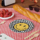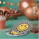 Ajoutez une touche de finesse au décor de votre petit anniversaire avec ces assiettes à damiers visage joyeux.