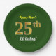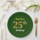 Assiettes En Carton Vert, anniversaire d'or de Faux 25ème + Nom fait