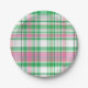 Assiettes En Carton Vert émeraude, Rose Chaud, Madras blanc Preppy Pla