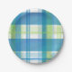 Assiettes En Carton Vert et bleu de plaid de Madras