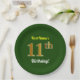 Assiettes En Carton Vert, Faux Gold 11e anniversaire + Nom personnalis