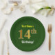 Assiettes En Carton Vert, Faux Gold 14e anniversaire + Nom personnalis