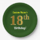 Assiettes En Carton Vert, Faux Gold 18e anniversaire + Nom personnalis