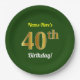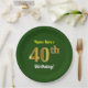 Assiettes En Carton Vert, Faux Gold 40e anniversaire + Nom personnalis