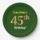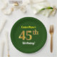 Assiettes En Carton Vert, Faux Gold 45e anniversaire + Nom personnalis