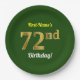 Assiettes En Carton Vert, Faux Gold 72e anniversaire + Nom personnalis