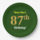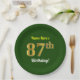 Assiettes En Carton Vert, Faux Gold 87e anniversaire + Nom personnalis