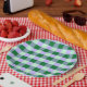 Assiettes En Carton Vert & Lavande En vichy Rayures Karo Motif