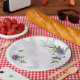 Assiettes En Carton vert mauve blanc fleuri