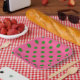 Assiettes En Carton Vert sur rose Pois Design Motif