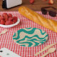 Assiettes En Carton Vibe Liquide Rétro Motif en Turquoise et beige