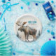Jolie plaque de papier de fête d'anniversaire avec un orignal célébrant l'hiver. Pour les enfants nés en hiver. Customisez ce produit en ajoutant les informations de votre partie.