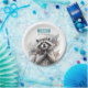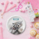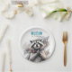 Jolie plaque de papier fête d'anniversaire avec un raton laveur célébrant l'hiver. Pour les enfants nés en hiver. Customisez ce produit en ajoutant les informations de votre partie.