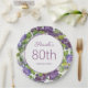 Belle aquarelle violette fleurie avec feuilles verts et vignes 80e anniversaire (ou tout âge) plaques de fête en papier customisé avec un nom et un âge.